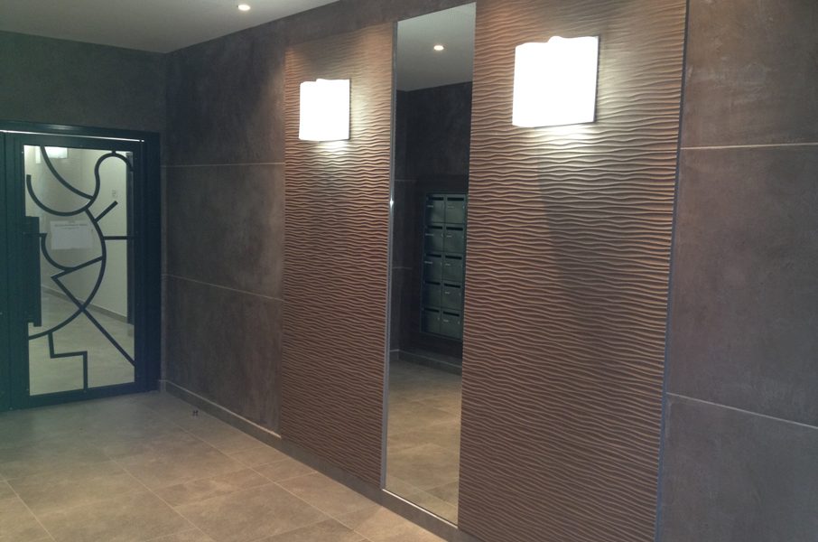 Recouvrir durablement les murs de cette copropriété, tout en laissant la place à une décoration accessoirisée, tel était le cahier des charges imposé par l’architecte d’intérieur.